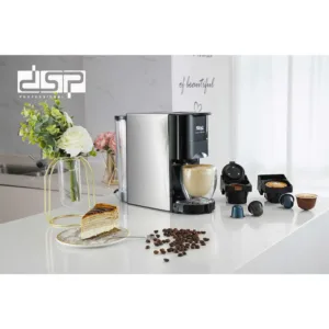- Expresorul 3 în 1 cu capsule, modelul DSP KA3046, este un dispozitiv de pregătire a cafelei care oferă multiple funcții integrate într-o singură unitate compactă. Iată o descriere a caracteristicilor sale: